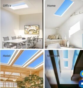 YUJILEDSのSkyline™ シリーズの青空ライトは太陽光模擬 再現技術に基づいており、自然の太陽光と澄んだ空の視覚体験を人工的に再現します。